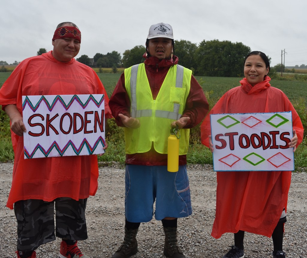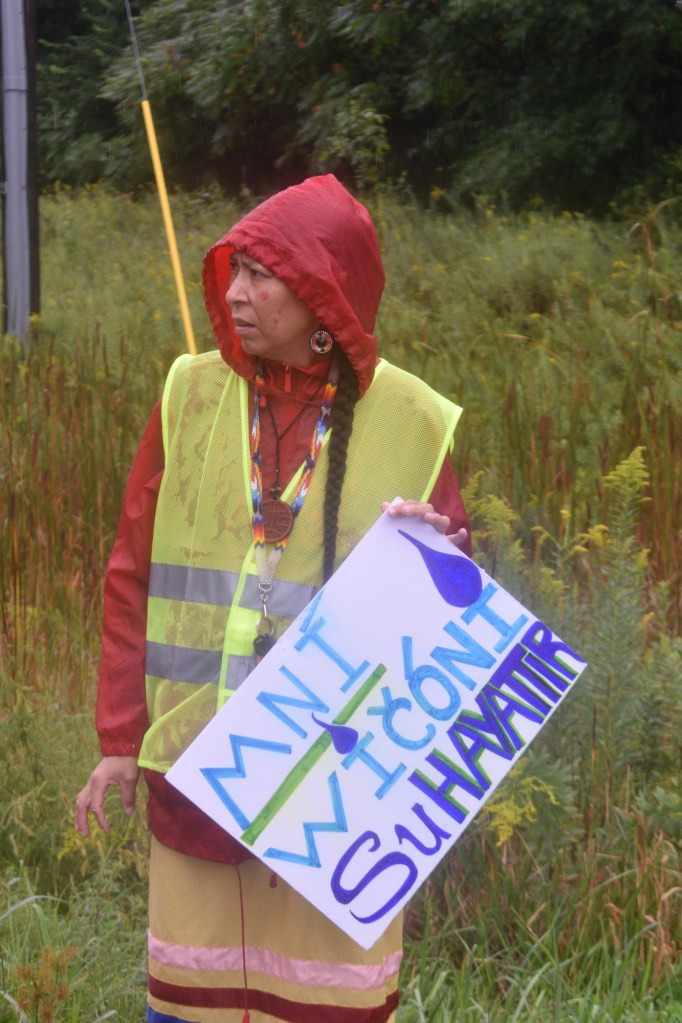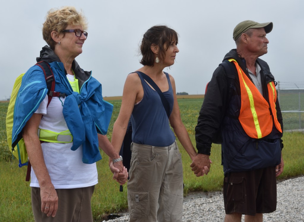 After Lee Tesdell’s presentation last night, he took me to see where the pipeline crossed the highway we would be traveling on when we left Huxley. We planned to have a ceremony when we reached the pipeline. Donnielle Wanatee offered good prayers, asking for protection for the walkers, and for their families at home. I was surprised at what an emotional time this was. It was especially difficult for Kathy Byrnes, bringing back a lot of bad memories of her past experiences with the construction of the pipeline on her neighbor’s land. Many offered her hugs.