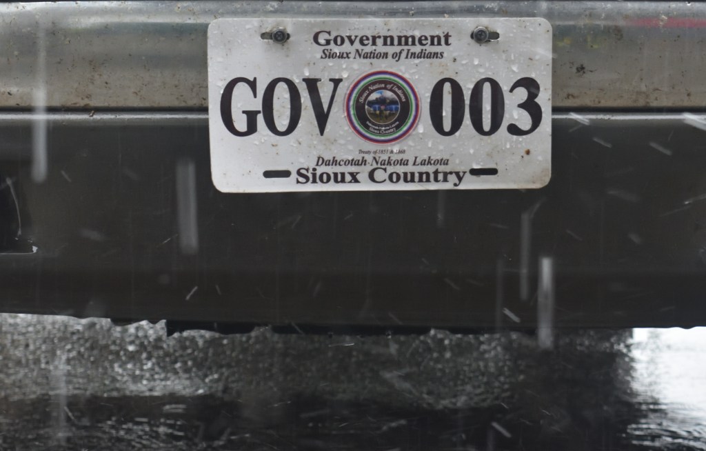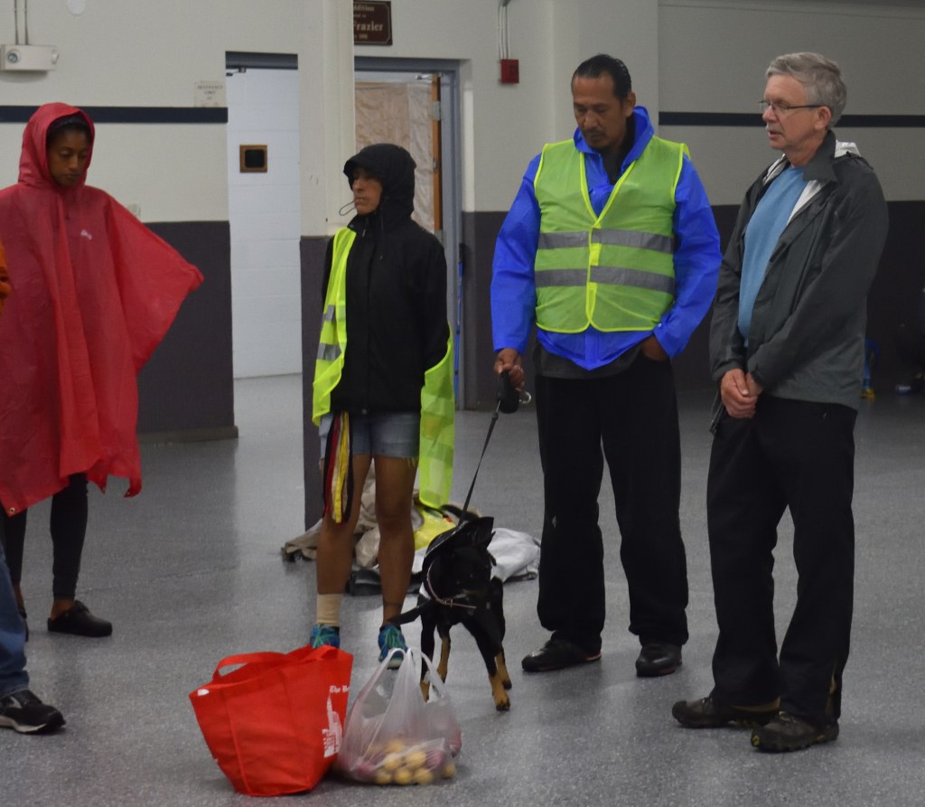 It was raining harder than ever when we started out that morning. But again I didn’t hear any complaints. We were warned to be more aware of traffic because we started out going through town. Before we started burning sage was brought to each of us. And Alton made a raincoat for his dog Oceti.