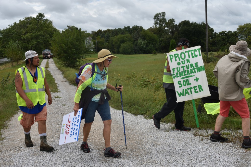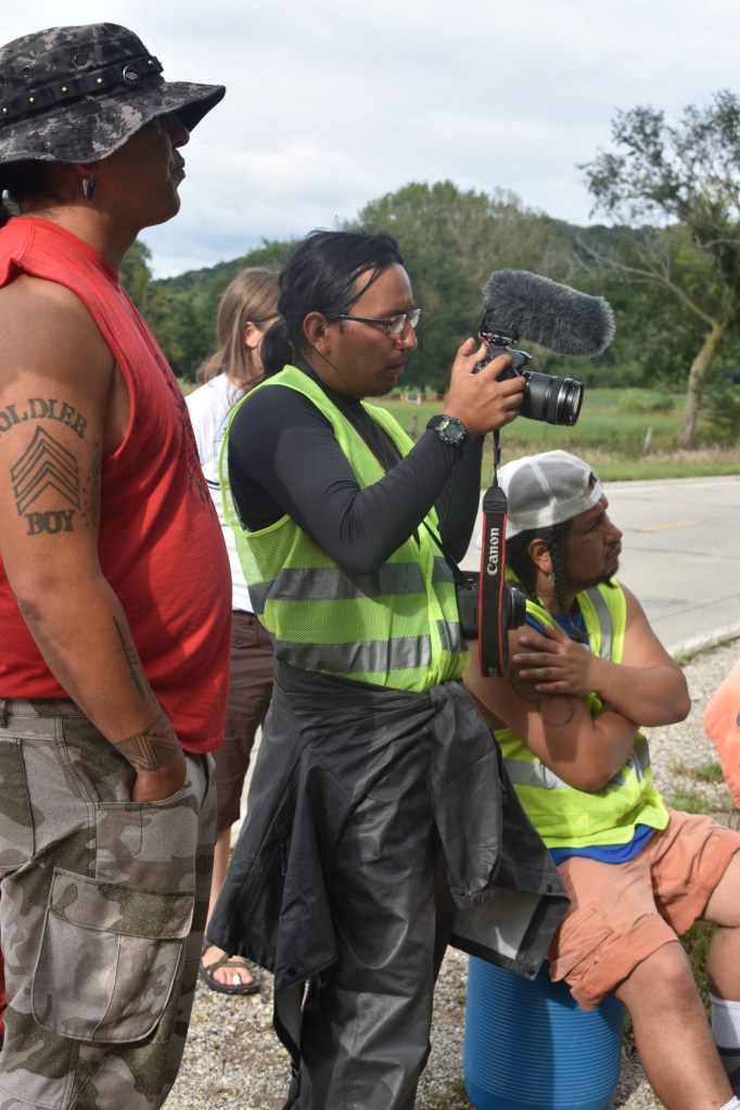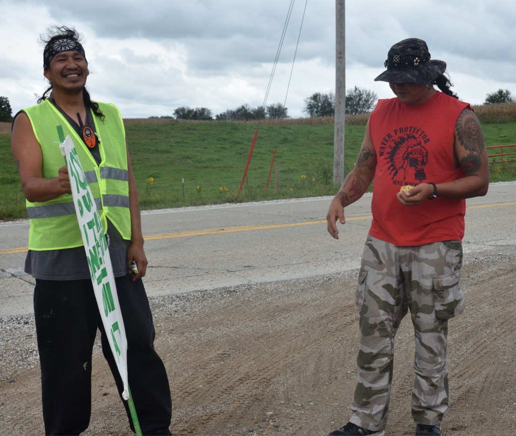 Once we arrived in Pilot Mound some of us noticed we were being followed by a car for a while. We learned the driver was Manape’s father, Frank, and he was just enjoying watching us march together. Frank has been a very active activist.