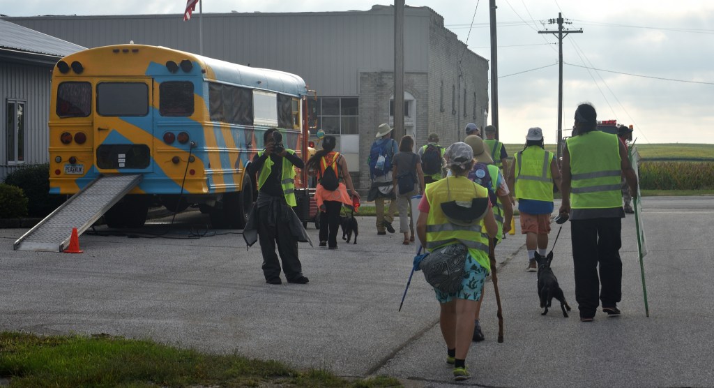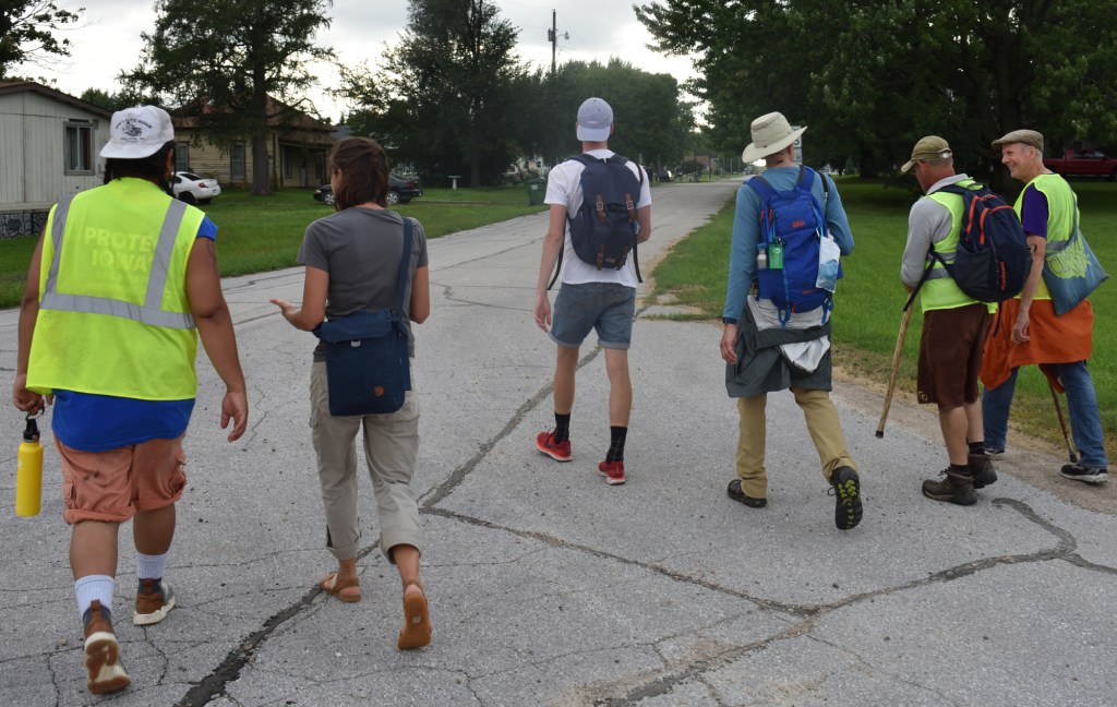 We found there was no cell phone or internet service available in Pilot Mound. In a way that seemed to symbolize that we were cut off from civilization. The whole marching and camping experience felt like we were back in a simpler time. We felt more in touch with nature. We also knew things like the severe storms and flooding we experienced were related to climate change, and to what we were trying to call attention to by marching.